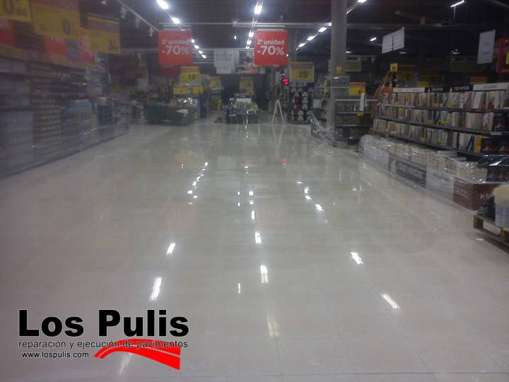Se desbasta toda la superficie para retirada de escalones y mediante sucesivas pasadas se puede llegar a sacar un brillo tal que se reflejen todos los objetos que hay a su alrededor. Acabados en brillos naturales y cristalinos. Se aplica sobre suelos de terrazo, mármoles, granitos, mosaicos, etc...